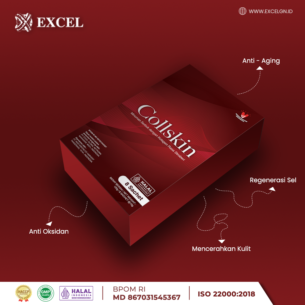 Ekstrak Stroberi (27,4%), Kolagen Ikan (22%), Ekstrak Ceri, Bubuk Bit Merah, Ekstrak Lemon, Ekstrak Anggur, Ekstrak Acaiberry, Ekstrak Lidah Buaya, Dekstrosa Monohidrat, L-Glutation, Ganggang Laut (Ganggang Hijau Biru), L-Sistein, Pemanis Alami Glikosida Steviol, Premiks Vitamin & Mineral